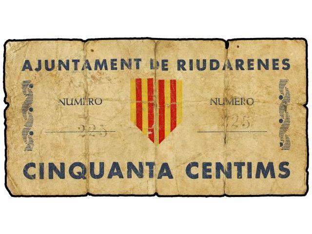 50 Cêntims. 16 Maig 1937. Aj. de RIUDARENES. (Roturas. Reparado). RARO. AT-2144; T-2481. BC.