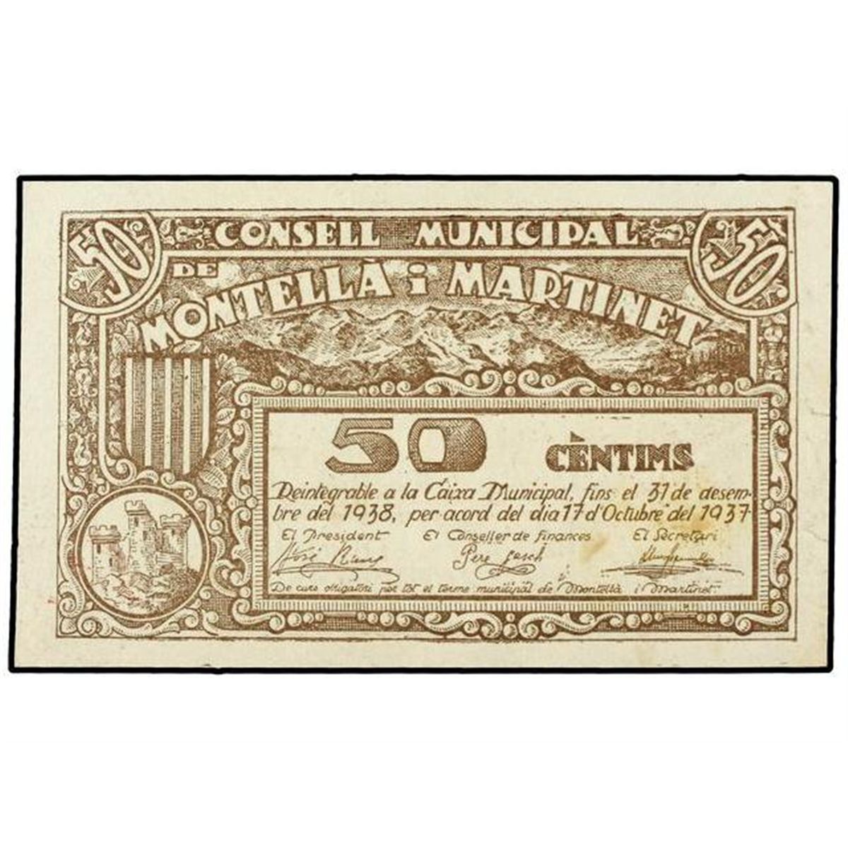 50 Cèntims. - 17 Octubre 1937. - C.M. de MONTELLA I MARTINET. - RARO. AT-1569; T-1802. MBC+. - -