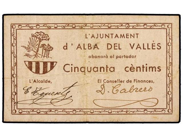 50 Cèntims. 1937. Aj. d´ALBA DEL VALLÈS. Conseller de Finances: Cabrero. RARO. AT-51a; T-64a. MBC.