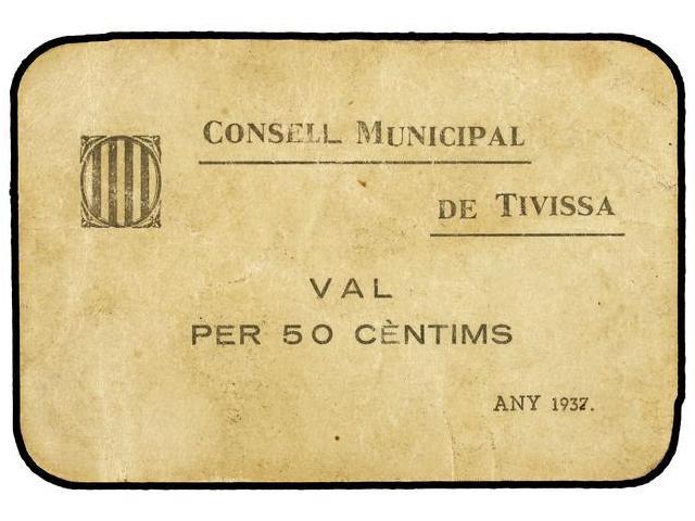 50 Céntims. 1937. C.M. de TIVISSA. (Algo sucio). MUY ESCASO. AT-2495 ; T-2890. MBC+.