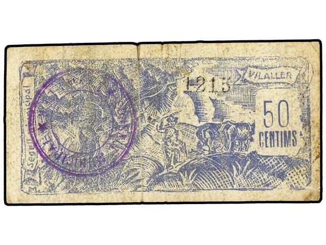 50 Cèntims. - 1937. - C.M. de VILALLER. - (Sucio y roturas). RARO. AT-2796; T-3234. BC+. - -