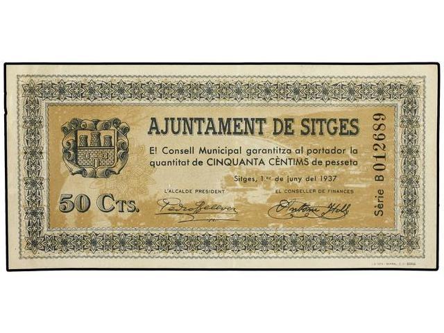 50 Cèntims. 1er Juny 1937. Aj. de SITGES. AT-2380 a ;T-2759 a. EBC-.