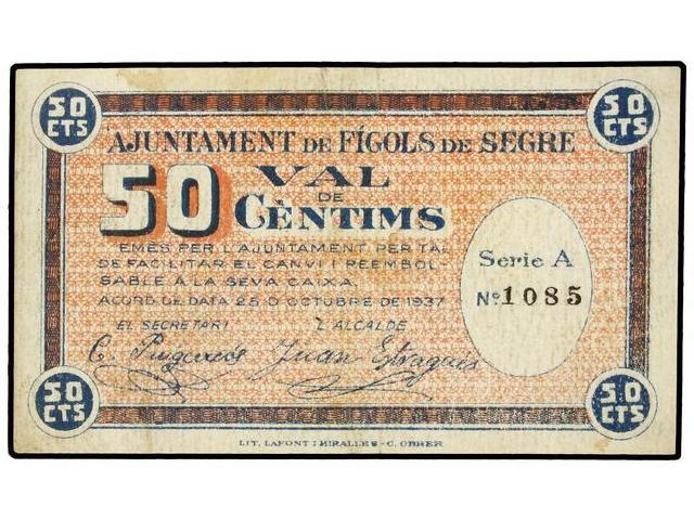 50 Cèntims. 25 Octubre 1937. Aj. de FÍGOLS DE SEGRE. AT-1004; T-866. MBC.