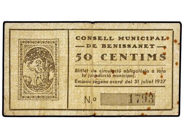 50 Cèntims. 31 Juliol 1937. C.M. de BENISSANET. (Manchas). AT-420; T-496. MBC+.