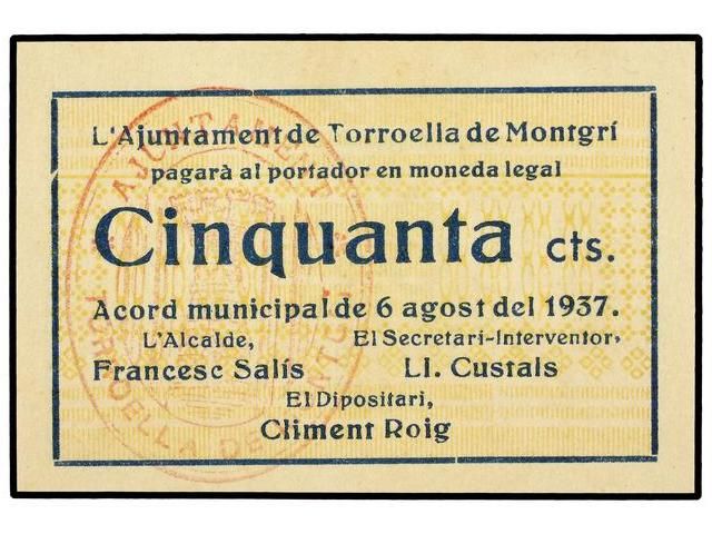 50 Cèntims. 6 Agost 1937. Aj. de TORROELLA DE MONTGRÍ. AT-2565. SC.