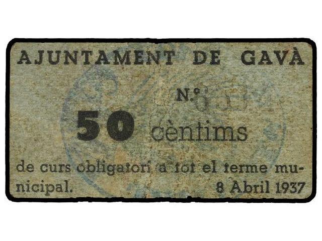 50 Cèntims. 8 Abril 1937. Aj. de GAVÀ. Cartón. AT-1103e; T-1279e. MBC+.