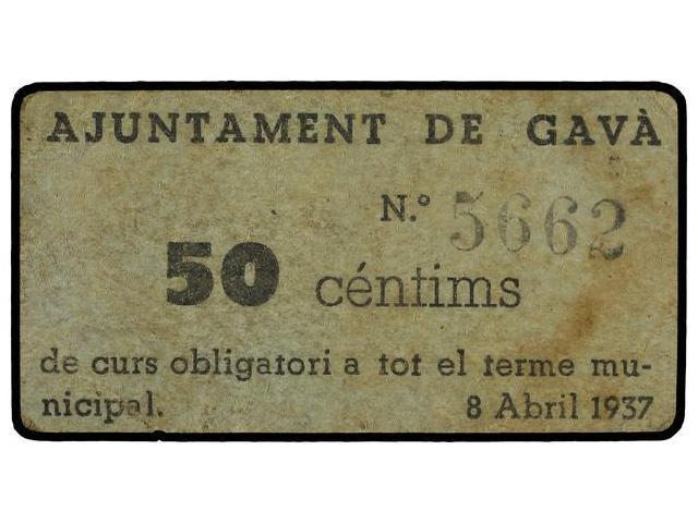50 Cèntims. 8 Abril 1937. Aj. de GAVÀ. Cartón. ESCASO. AT-1103c; T-1279. EBC.