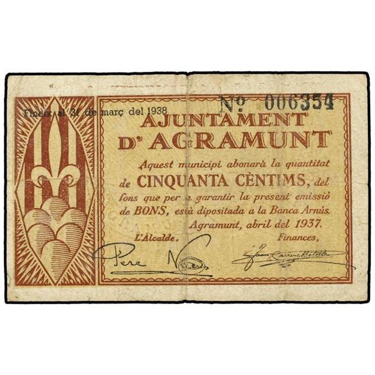 50 Cèntims. - Abril 1937. - Aj. d´AGRAMUNT. - AT-7 ;T-14. MBC-. - -