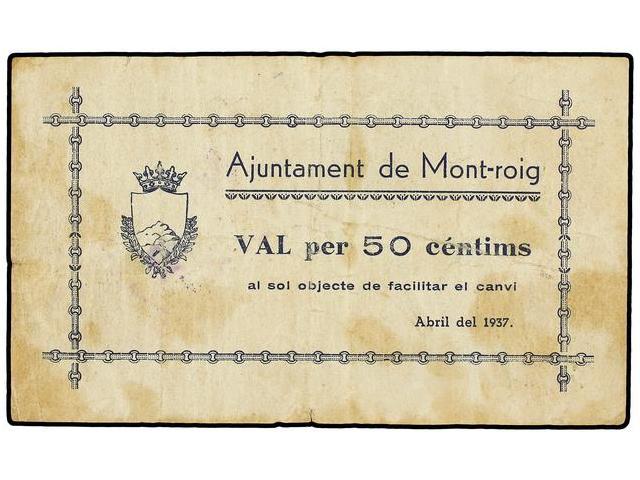 50 Cèntims. Abril 1937. Aj. de MONT-ROIG. (Manchas). RARO. AT-1598; T-1834. MBC.