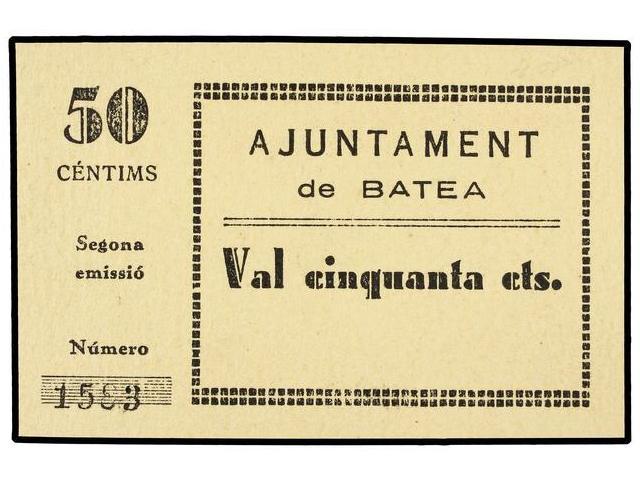 50 Cèntims. Aj. de BATEA. Cartón. RARO. AT-326; T-391. SC.