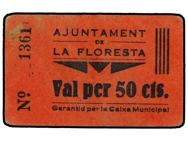 50 Cèntims. Aj. de LA FLORESTA. Cartón. MUY RARO. AT-1025; T-1195. EBC.