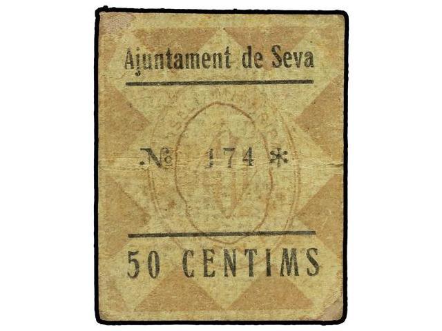 50 Cèntims. Aj. de SEVA. Cartón. RARO. AT-2376, T-2755. MBC.