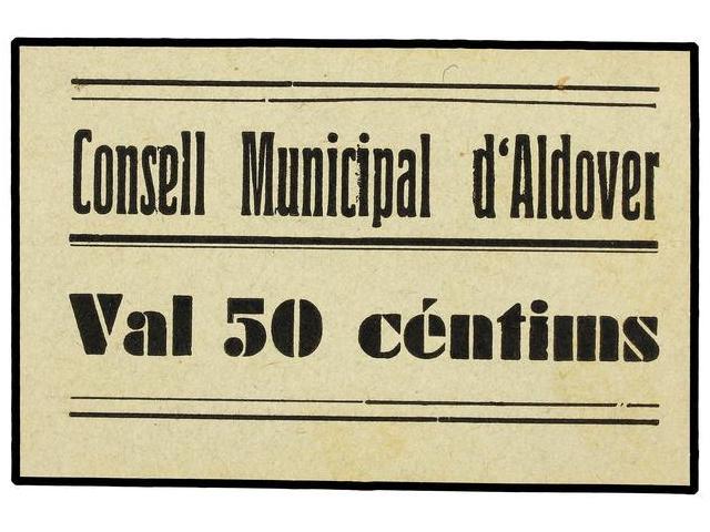 50 Cèntims. C.M. d´ALDOVER. Cartón. RARO. AT-89; T-113. SC.