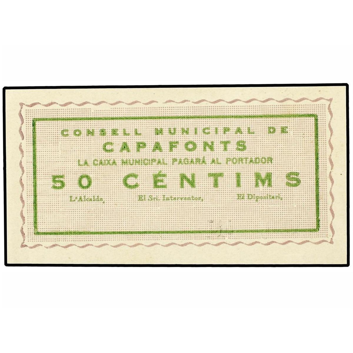 50 Cèntims. - C.M. de CAPAFONTS. - MUY RARO. AT-648;T-759. S/C. - -