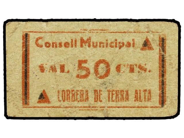 50 Cèntims. C.M. de CORBERA DE TERRA ALTA. Cartón. (Sucio). RARO. AT-882; T-1019. MBC-.