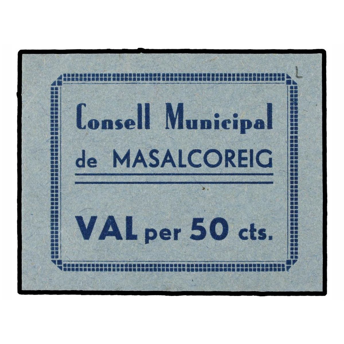 50 Cèntims. - C.M. de MASALCOREIG. - Cartón. RARÍSIMO. AT-1481; T-1996. EBC+. - -
