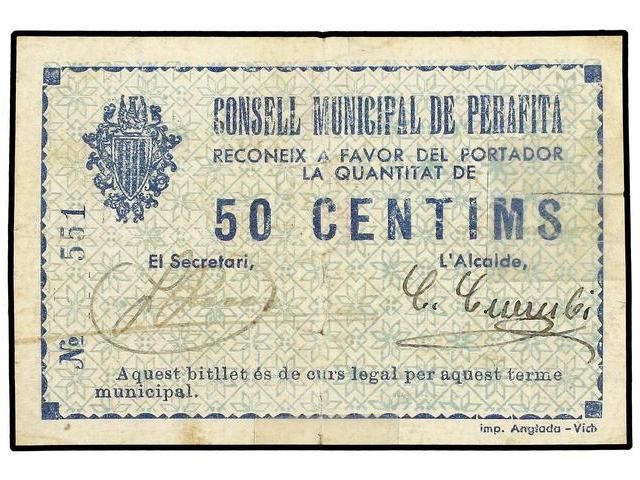 50 Cèntims. C.M. de PERAFITA. (Rotura restaurada). ESCASO. AT-1804. MBC-.