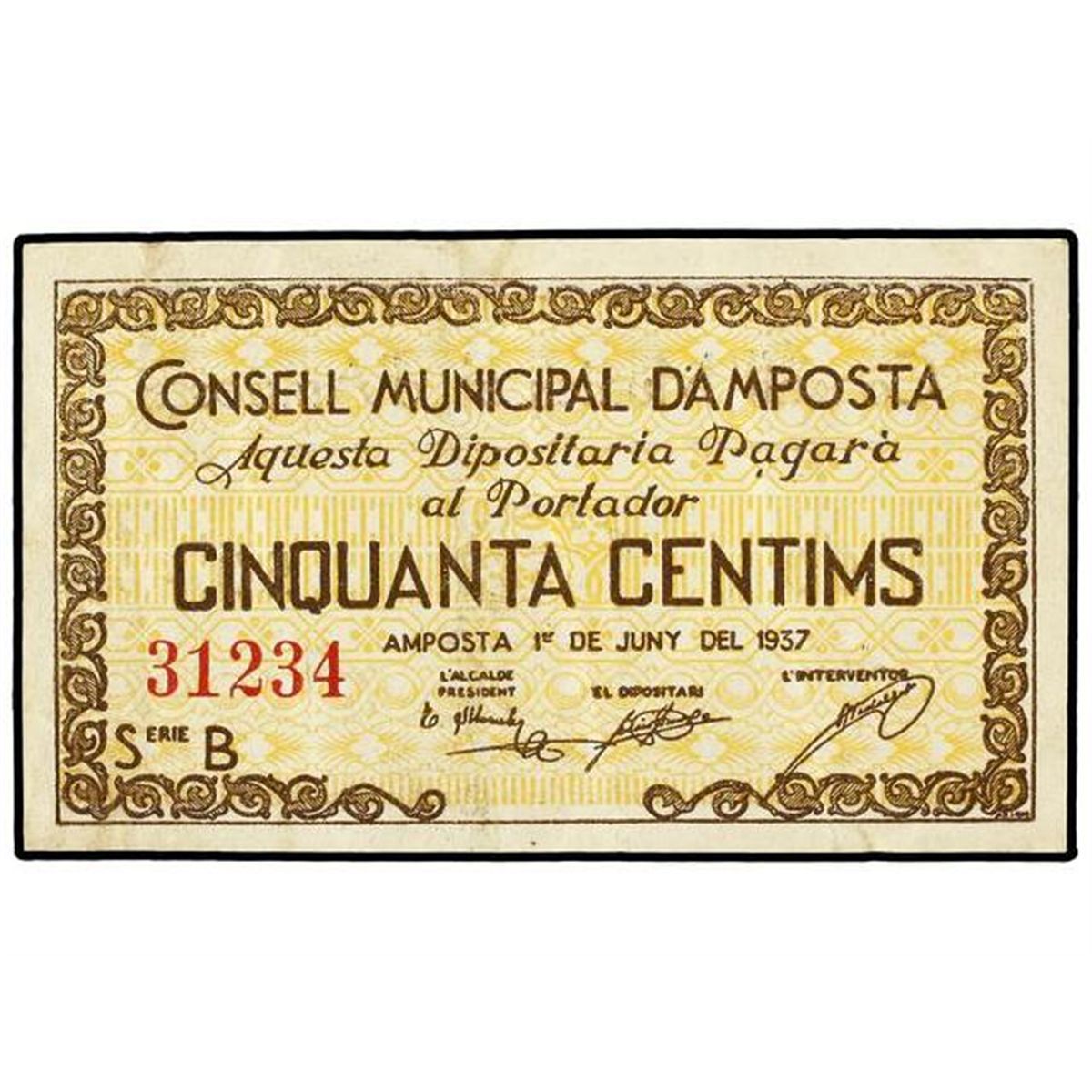 50 Cèntims. - Junio 1937. - C.M. de AMPOSTA. - AT-156;T-212. EBC-. - -