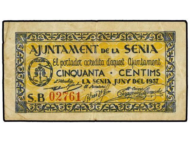 50 Cèntims. Juny 1937. Aj. de LA SÈNIA. AT-2331; T-2699. MBC.
