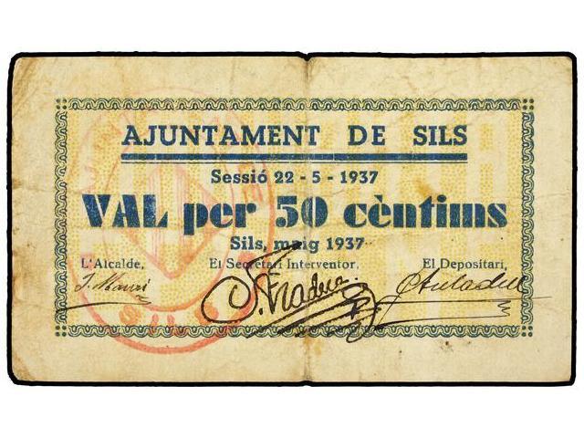 50 Cèntims. Maig 1937. Aj. de SILS. (Algo sucio). AT-2378; T-2757. MBC.