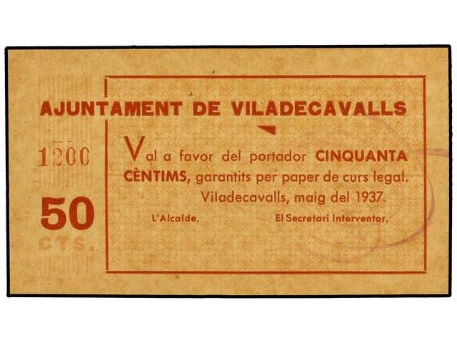 50 Cèntims. Maig 1937. Aj. de VILADECAVALLS. ESCASO. AT-2771. SC.