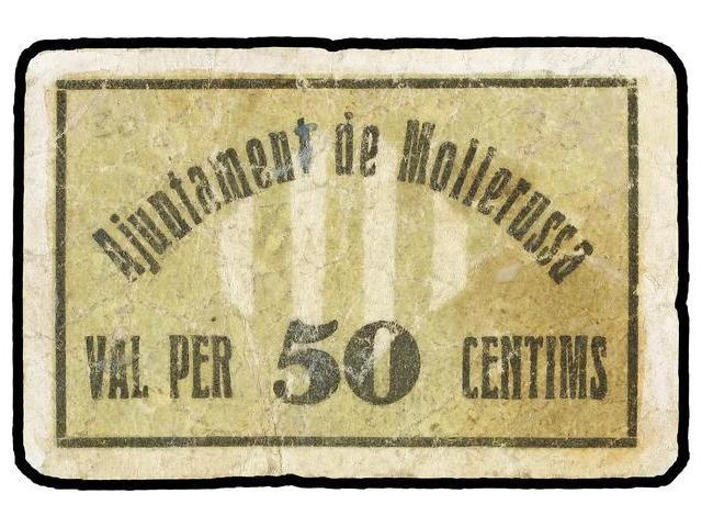 50 Cèntims. S/F. Aj. de MOLLERUSSA. Cartulina. (Pequeñas roturas). AT-1515; T-1737. MBC-.