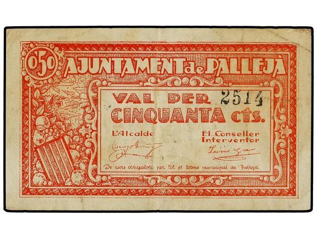 50 Cèntims. S/F. Aj. de PALLEJÀ. Sin sello tampón. AT-1770b; T-2037b. MBC+.