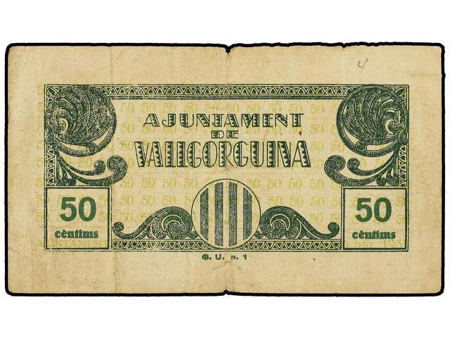 50 Cèntims. S/F. Aj. de VALLGORGUINA. (Pequeñas roturas). ESCASO. AT-2676; T-3093. MBC-.