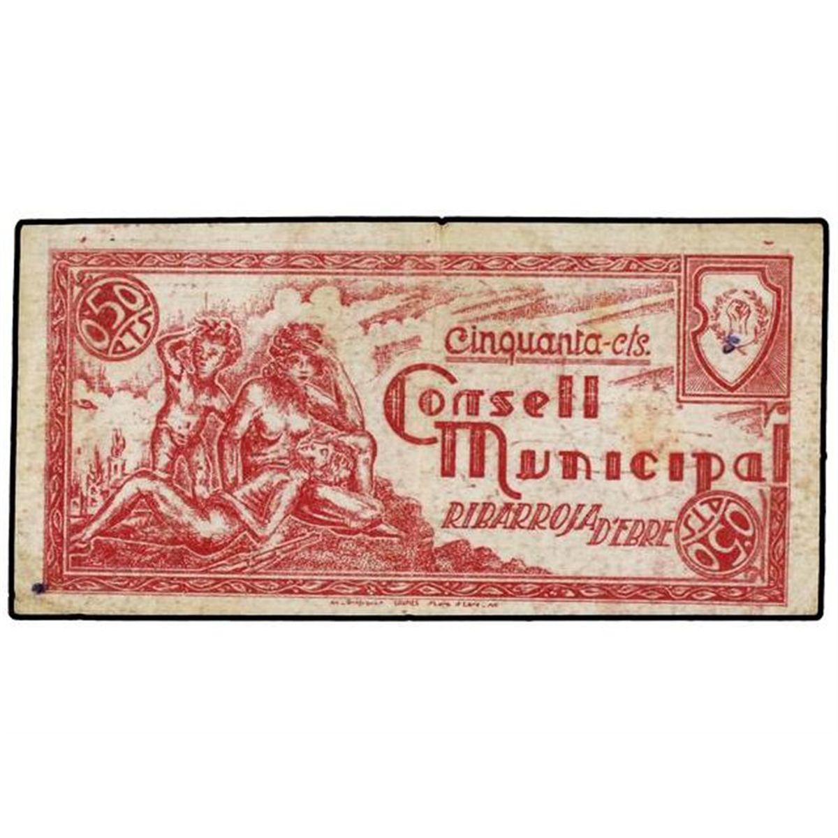 50 Cèntims. - S/F. - C.M. de RIBARROJA D´EBRE. - (Sucio). ESCASO. AT-2102; T-2432. MBC+. -