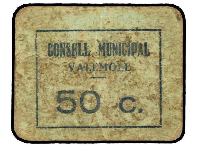 50 Cèntims. S/F. C.M. de VALLMOLL. Cartón. Sin sello tampón. (Sucio). AT-2679a; T-3097a. MBC.