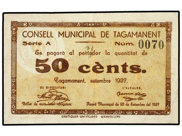 50 Cèntims. Setembre 1937. C.M. de TAGAMANENT. MUY RARO. AT-2427; T-2817. EBC+.