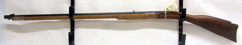 NON-RESTRICTED, FLINTLOCK, 50 CALIBRE MUZZLELOADER, 35 INCH BARREL, SN 32352. WOOD HAS NO FINISH. BLUEING IS GOOD, EXCEPT FOR RUST NEAR LOCK. BORE IS POOR. DISASSEMBLED, MOST PARTS APPEAR TO BE PRESENT.