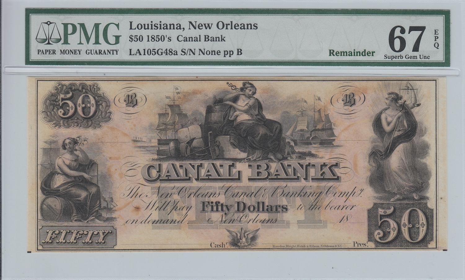$50 CANAL PMG SUPERB GEM 67 EPQ STUNNING
