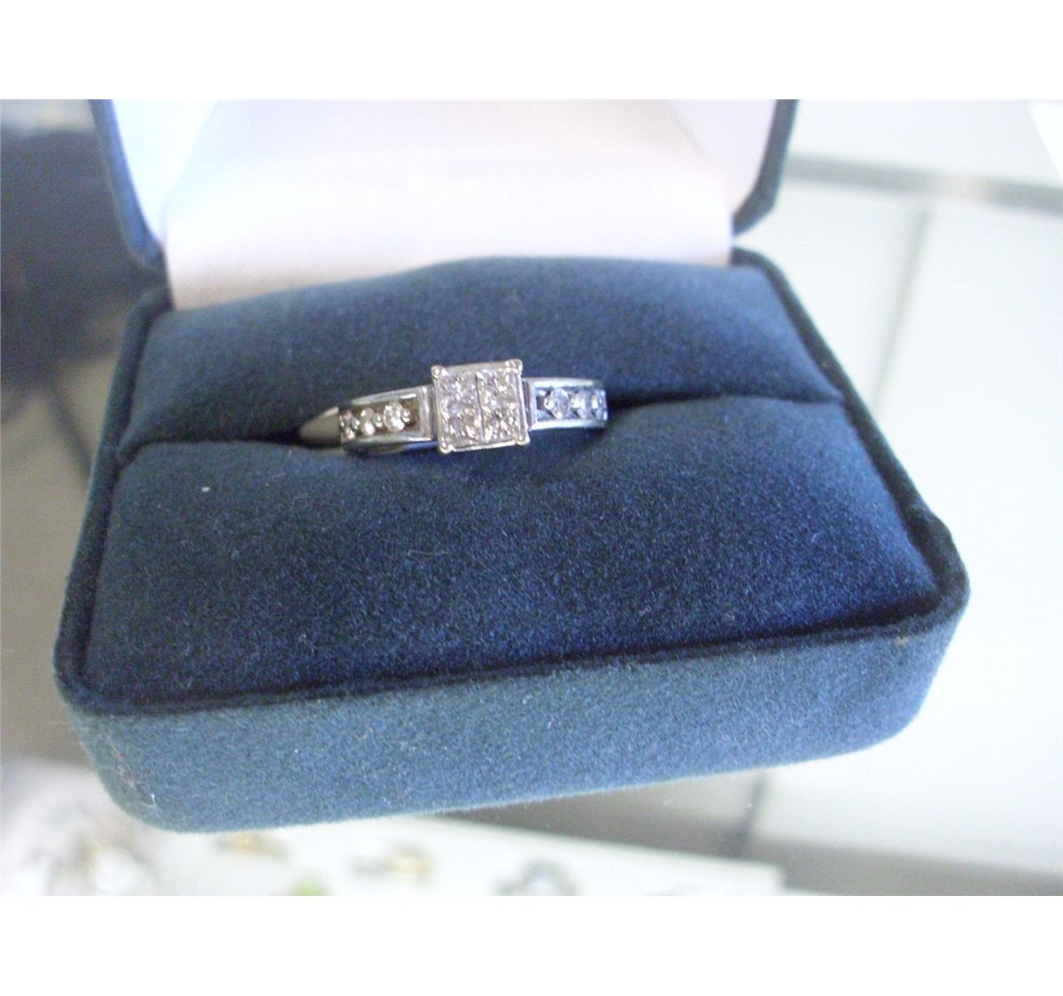 .50 CARAT 4 PRINCESS CUT DIAMONDS PLUS 6 IN BAND ROUND DIAMONDS LADIES RING, 14K GOLD