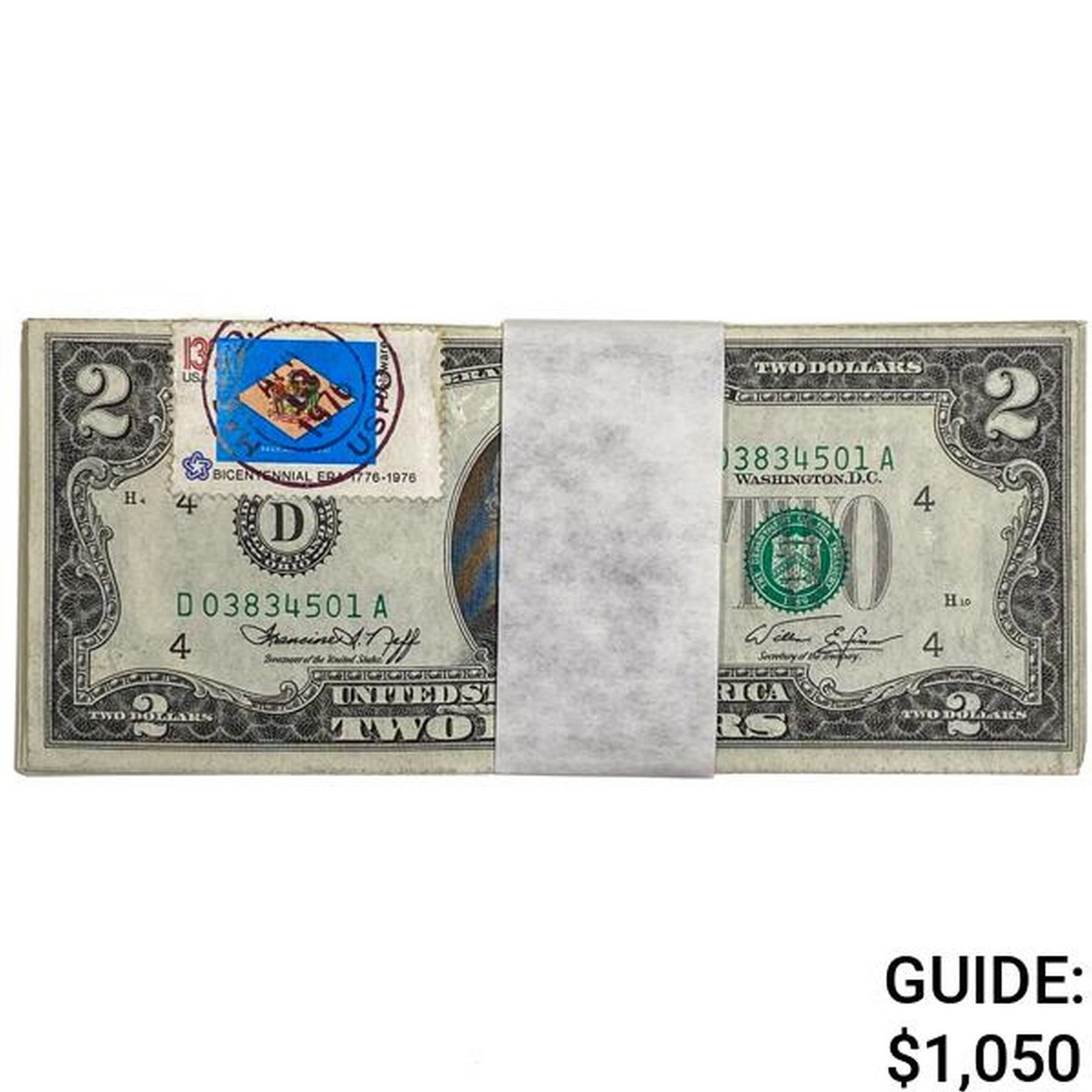 (50) CONSECUTIVE 1976 $2 TWO DOLLARS STAMPED FIRST DAY ISSUE FRN FEDERAL RESERVE NOTES UNCIRCULATED