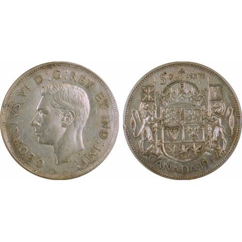 50¢ Canada 1947 EF 40 ICCS<Br>Maple Leaf (Straight 7); Light toning