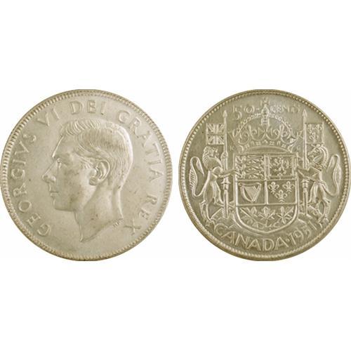 50¢ Canada 1951 MS63 ICCS<Br>Lightly toned