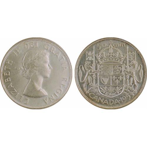 50¢ Canada 1953 MS63 ICCS<Br>Large Date, Shoulder Fold