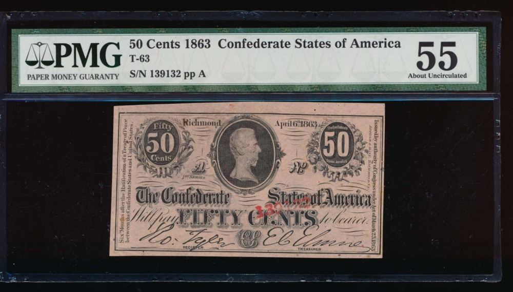 One 50 Cent 1863 Confederate States of America Note PMG 55.