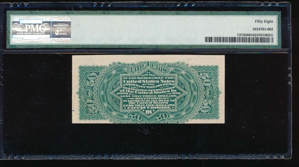 One 50 Cent 1864 Fourth Issue Fractional Note PMG 58.