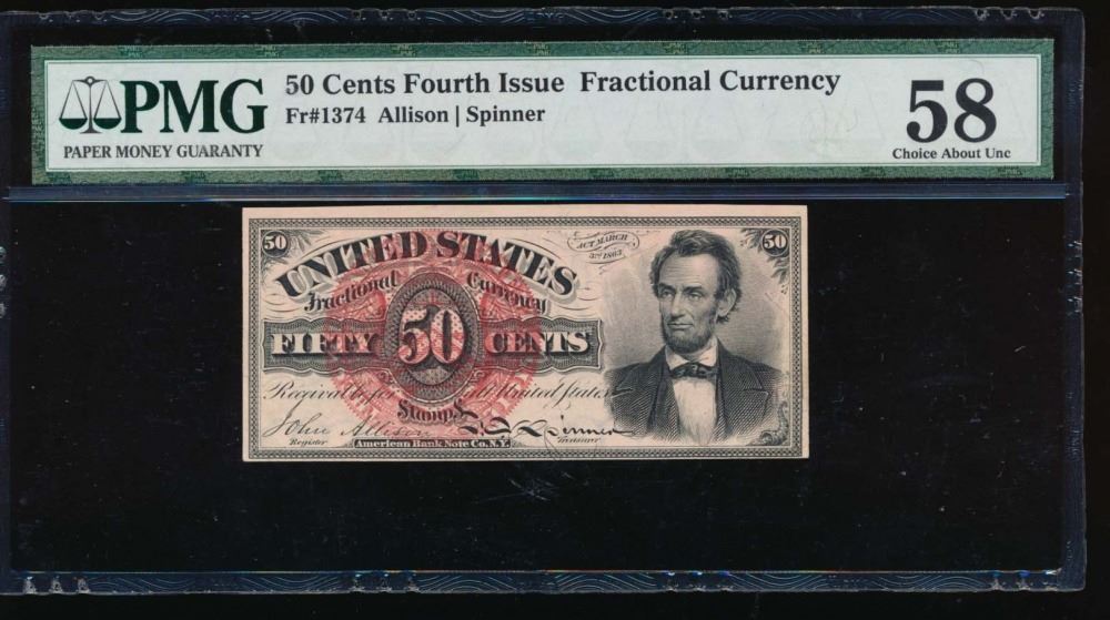 One 50 Cent 1864 Fourth Issue Fractional Note PMG 58.
