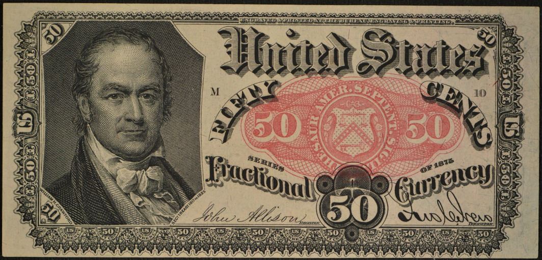 One 50 Cent 1874-76 Fifth Issue Fractional Note.