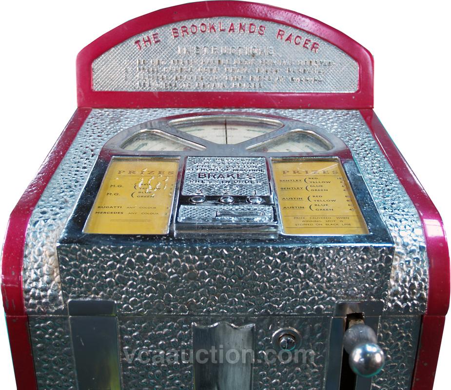 50 Cent Brooklands Racer w/ Skill Stops Arcade Game On stand - restored and converted from english penny, w/ key