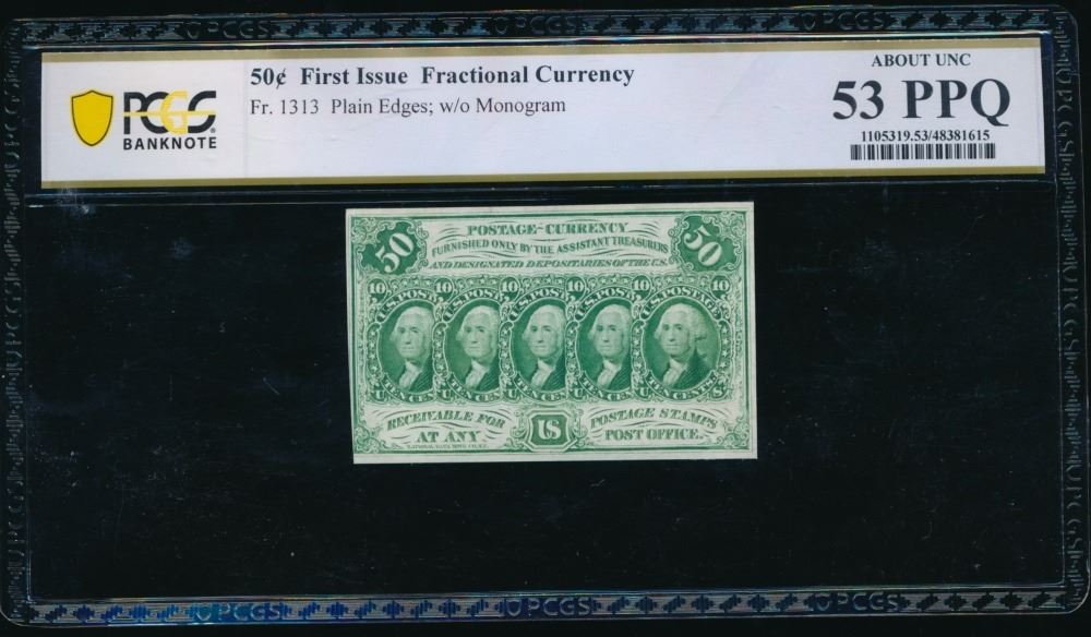 One 50 Cent First Issue Fractional PCGS 63PPQ.
