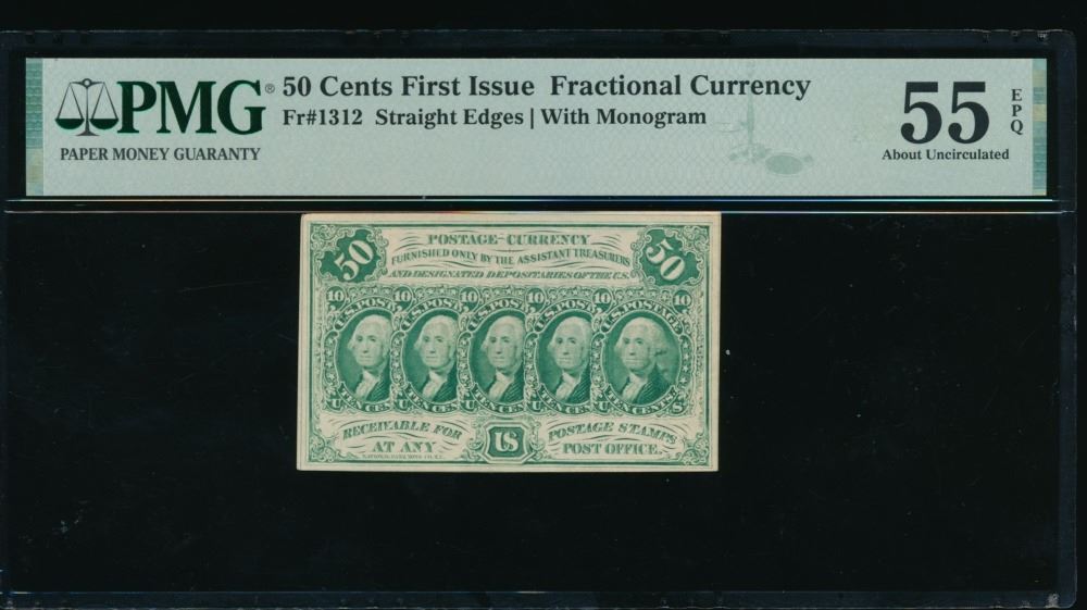 One 50 Cent First Issue Fractional PMG 55EPQ>