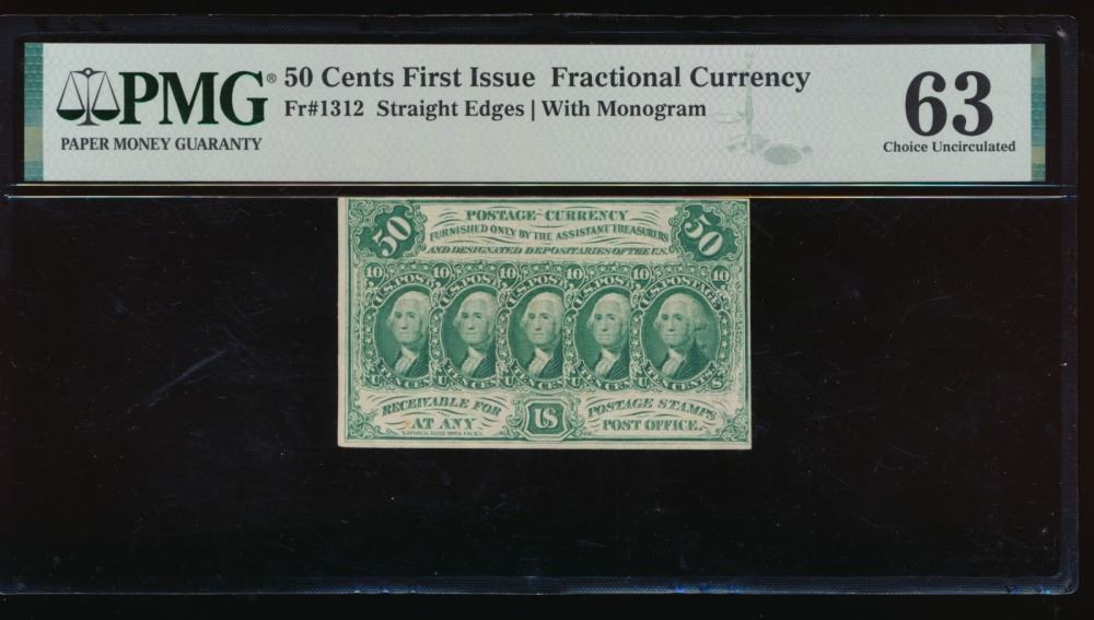 One 50 Cent First Issue Fractional PMG 63.