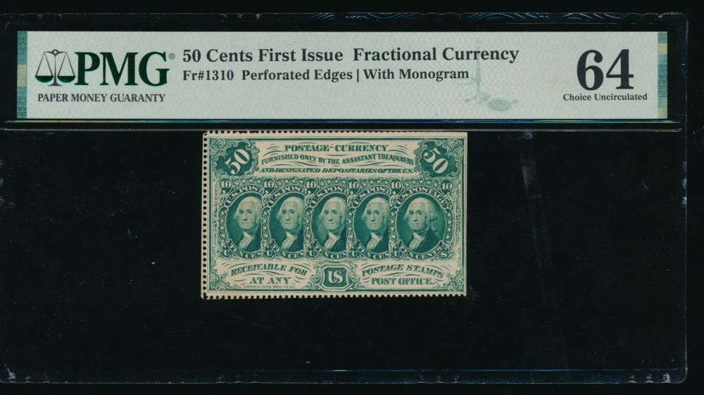 One 50 Cent First Issue Fractional PMG 64.