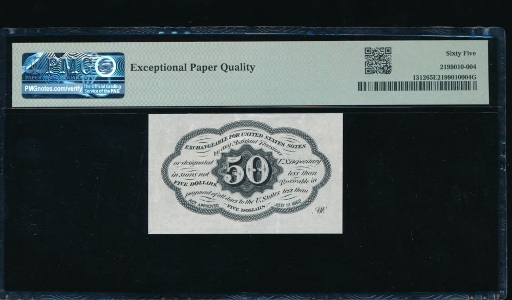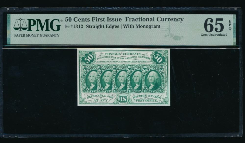 One 50 Cent First Issue Fractional PMG 65EPQ.