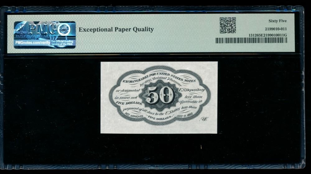 One 50 Cent First Issue Fractional PMG 65EPQ.