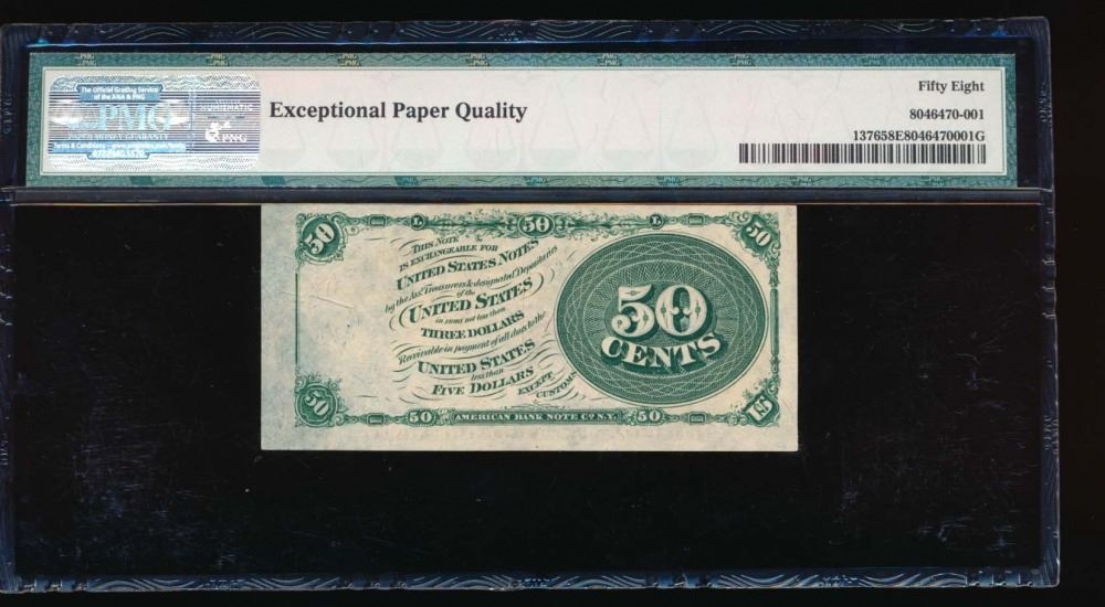 One 50 Cent Fourth Issue Fractional Note PMG 58EPQ No Serial Number.